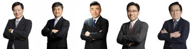 (사진 좌측부터) 박주형 신세계 대표이사 兼 신세계센트럴시티 대표이사, 한채양 이마트 대표이사, 송현석 신세계푸드 대표이사兼 ㈜신세계L&B 대표이사, 임영록 신세계프라퍼티 兼 조선호텔앤리조트 대표이사, 이석구 신세계라이브쇼핑 대표이사. 사진=신세계그룹이미지 확대보기