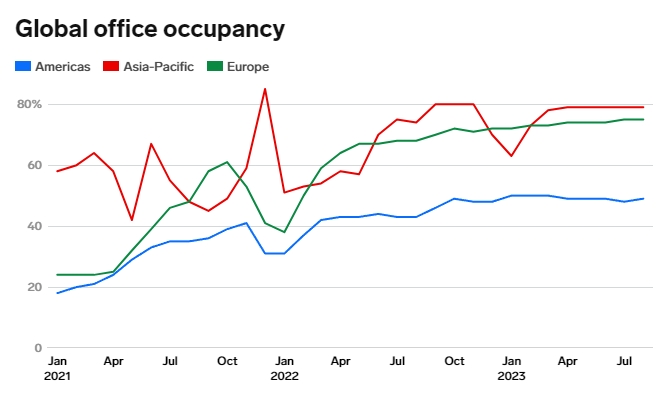 글로벌 종합부동산 서비스업체 존스랑라살(JLL)이 최근 발표한 전 세계 사무실 공실률 조사 결과에서도 비슷한 흐름이 확인됐다고 비즈니스인사이더는 전했다.
