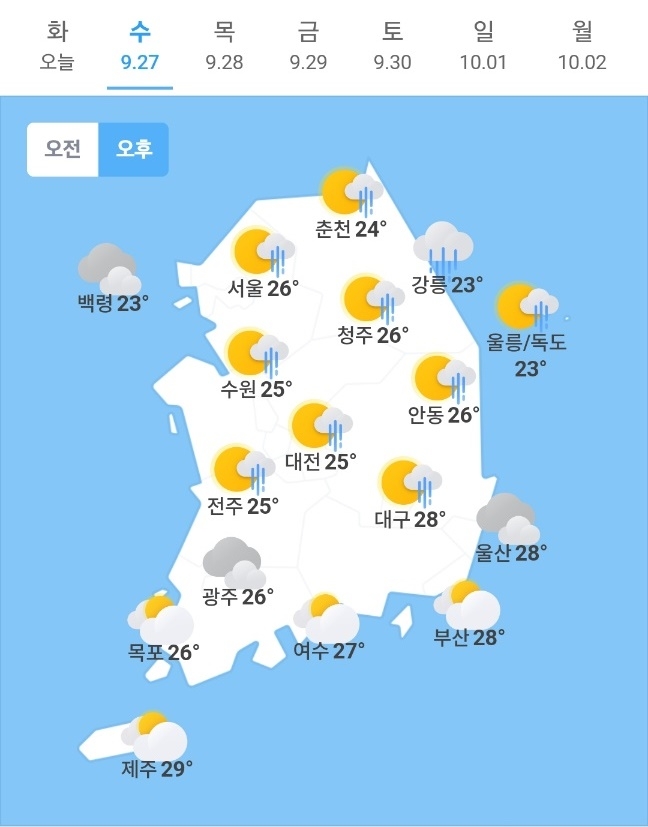 오늘일기예보·내일날씨예보…추석연휴 앞두고 비 내려