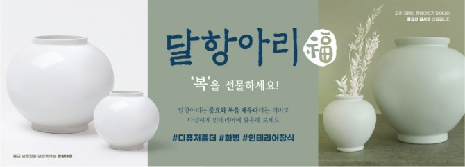 이번에 판매하는 ‘달항아리’는 총 3가지 사이즈이며, 2000원, 3000원, 5000원의 판매가로 선보인다. 유광과 무광 타입으로 준비했고, 상품의 직경이 약 10~18cm 전후로 책상 위에 올려놓거나, 다른 인테리어 용품과 같이 연출하면 좋은 사이즈로 기획했다. 조화나 생화를 넣거나 디퓨져 홀더로 사용하는 등 다양한 인테리어 소품으로도 활용이 가능하다.