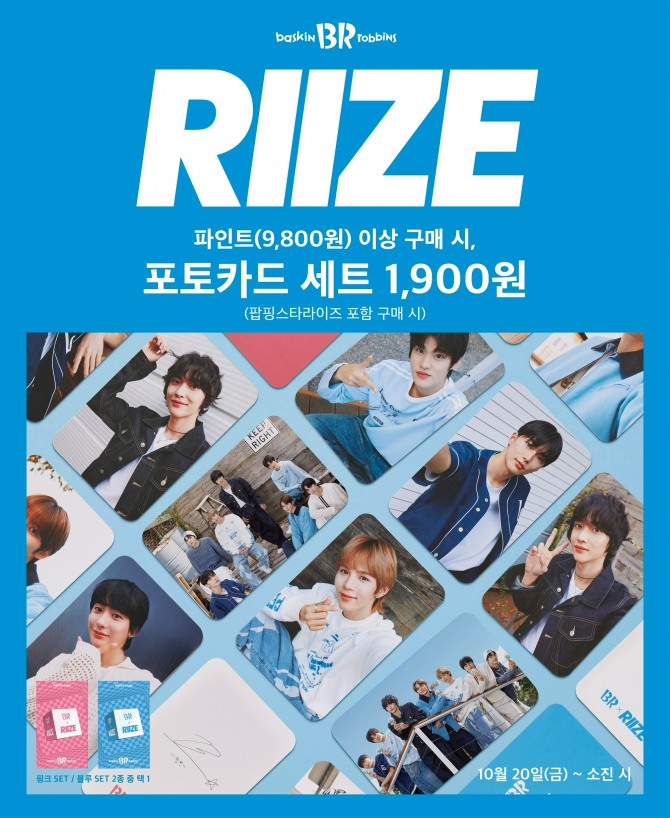 SPC 배스킨라빈스가 현재 ‘어나더급’ 신인의 기세로 두각을 나타내고 있는 SM의 보이그룹 ‘라이즈(RIIZE)’와 손잡고 배스킨라빈스 한정 미공개 ‘라이즈’ 포토카드 세트를 굿즈로 선보인다.