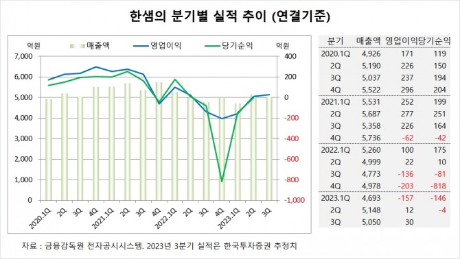 한국투자증권은 한샘의 3분기 연결기준 매출액이 5050억원, 영업이익이 30억원에 이를 것으로 내다봤다. 3분기 영업이익은 시장 컨센서스인 23억원을 상회할 전망이다.