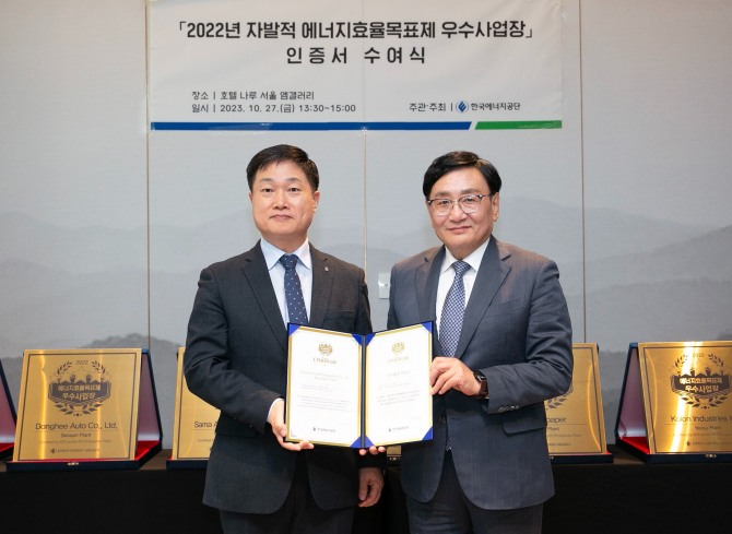이미지 확대보기동서식품이 한국에너지공단이 주관한 2022년 자발적 에너지효율목표제에서 부평공장이 우수사업장으로 선정됐다. 지난 27일 서울 마포구 호텔 나루 서울 엠갤러리에서 개최된 ‘2022년 자발적 에너지효율목표제 우수사업장 인증서 수여식’에서 동서식품 부평공장 김정기 공장장이 참석해 한국에너지공단이 수여하는 우수사업장 인증서와 현판을 받았다.