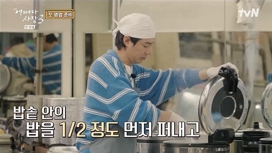 이미지 확대보기영업 개시 하루 전 조인성은 앞으로 열흘 동안 운영하게 된 마트를 둘러보며 하루에 만들어야 할 김밥 양에 놀라다가도, 주방 공간이 11자 형태라 동선이 꼬일 수 있음을 단번에 파악하며 경력직 사장다운 포스를 내뿜었다.