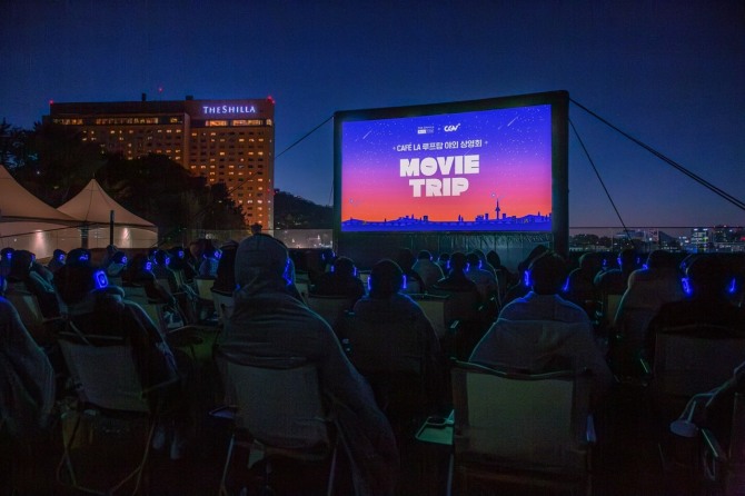 이번 무비 트립 행사는 색다른 공간에서의 이색 체험을 원하는 MZ세대를 타겟으로 신라면세점과 CGV의 협업을 통해 남산 배경의 아름다움을 느끼며 영화를 즐길 수 있도록 기획됐다.