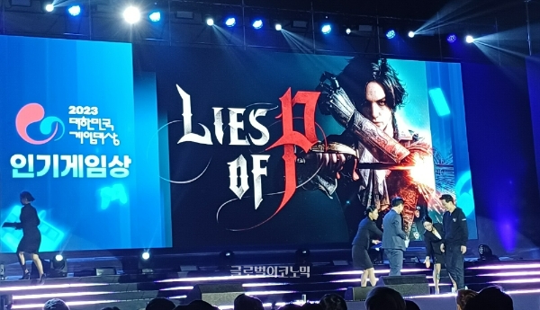 이미지 확대보기부산 벡스코에서 15일 오후 5시에 열린 2023 대한민국 게임대상 시상식에서 네오위즈 'P의 거짓'은 대상, 기술·창작상 기획·시나리오 부문, 사운드 부문, 그래픽 부문, 인기게임상, 우수개발자상까지 총 여섯 개 상을 휩쓸었다.