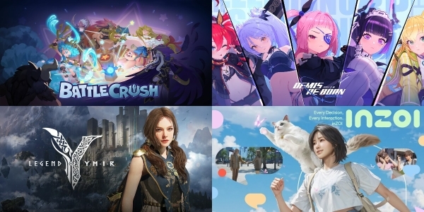왼쪽 위부터 시계 방향으로 엔씨소프트 '배틀 크러쉬', 넷마블 '데미스 리본', 크래프톤 '인조이', 위메이드 '레전드 오브 이미르'. 사진=각 사이미지 확대보기