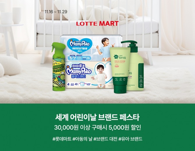 이미지 확대보기‘베이비 브랜드 페스타’에서는 겨울철이 다가올수록 고객 수요가 높아지는 유아 보습 용품을 중심으로 물티슈, 기저귀, 클렌저까지 총 250여종의 행사 상품을 만나볼 수 있다. 해당 행사 상품 합산 3만원 이상 구매 시 5000원 롯데 상품권을 즉시 지급하며, 롯데온 내 롯데마트몰에서도 5000원 즉시 할인 혜택을 제공한다.