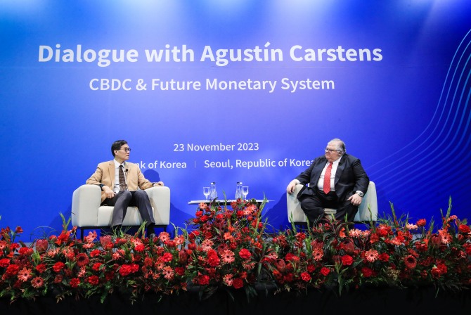 이미지 확대보기카르스텐스 사무총장은 이날 서울 중구 한은 별관 컨퍼런스홀에서 'CBDC와 미래 통화 시스템'을 주제로 열린 세미나에서 기조연설을 통해 CBDC와 미래 통화시스템에 관한 비전을 제시하고, 이창용 한은 총재와 한국의 CBDC, 디지털 혁신 등에 대해 논의했다.