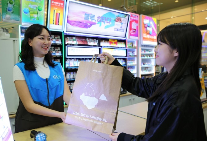 기존 GS리테일의 쇼핑백에는 GS25, GS더프레시 등 사업별 BI와 함께 가맹점 창업 안내, 모바일앱 등의 홍보 문구가 인쇄됐었는데, 종이 쇼핑백 전면에는 GS리테일의 상호만 최소화하며 친환경 캠페인의 효과를 극대화했다.