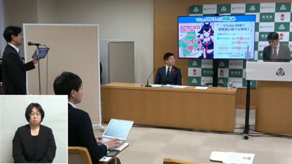 야마모토 이치타(山本一太) 현지사가 직접 주관한 이번 회견장에선 오오카미 미오가 직접 등장하는 영상 메시지가 공개됐다. 회견 이후에는 기자가 군마현 관계자들과 이번 협업에 대해 질의를 주고받기도 했다.
