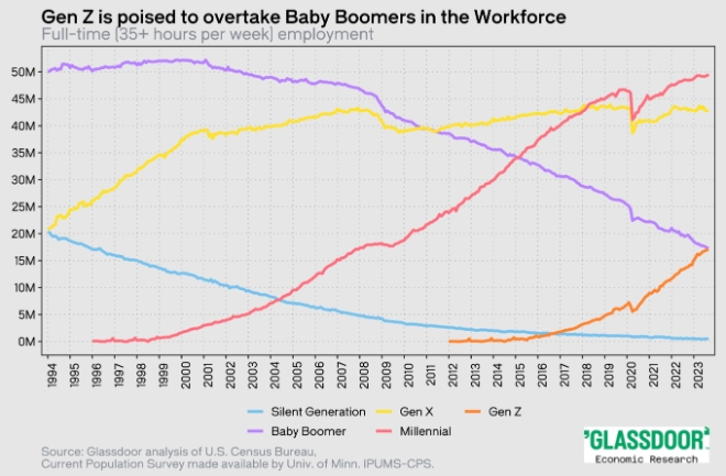 글래스도어 “정규직 시장서 Z세대 비중, 내년 중 베이비붐 세대 추월”