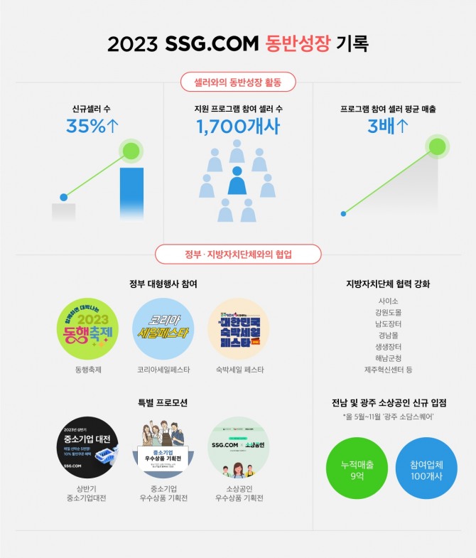 SSG닷컴은 올 3월부터 신규 셀러 성장 프로그램을 도입해 광고비 혜택, 매출 달성 축하금 등을 지원하며 셀러가 입점 이후 판매에만 집중할 수 있는 환경을 조성하고자 했다. 이어 4월에는 셀러 1000여명을 초청한 ‘쓱커밍데이’를 진행해 우수 협력 사례 및 운영 노하우를 공유하며 상호 소통하는 시간을 가졌다.