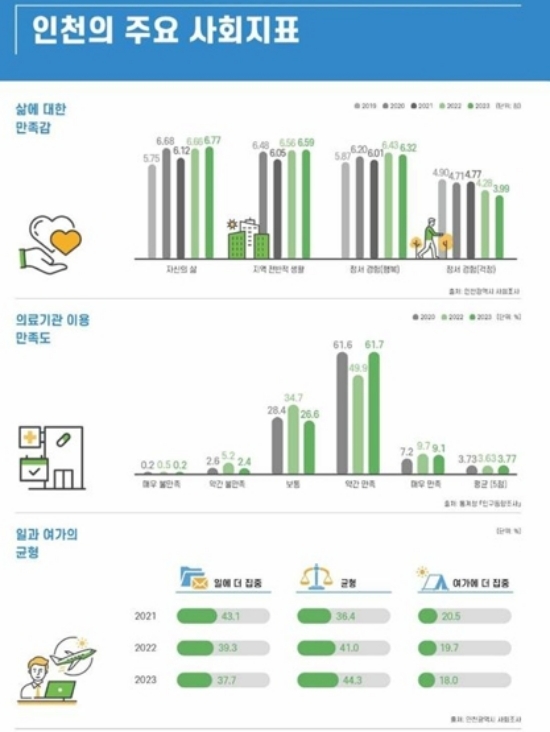 2023년 인천 사회지표에 관련한 보다 자세한 내용은 인천시 홈페이지(인천데이터포털→통계정보→통계간행물→사회조사)를 통해 확인할 수 있다.