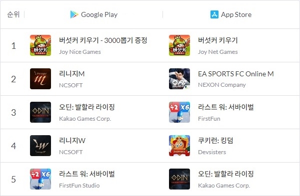 이로써 기존에도 1, 2위를 오고가던 애플 앱스토어 매출 순위를 포함 양대 앱 마켓에 동시에 1위에 오르는 기록을 썼다. 외산 게임으로서 이러한 기록은 2020년 출시작인 호요버스의 '원신' 등 극히 일부만이 거둔 성과다.
