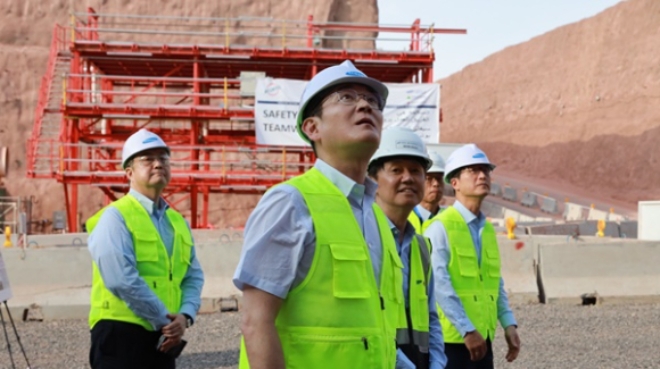 지난해 이재용 삼성전자 회장(맨 앞)은 사우디아라비아 서북부 타북주에서 삼성물산이 참여하는 '네옴' 신도시의 지하 터널 공사 현장을 살펴본 바 있다. 사진=삼성전자이미지 확대보기