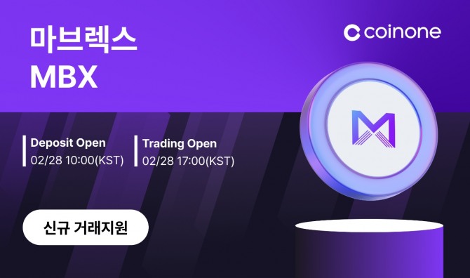 이미지 확대보기코인원은 28일 오후 7시부터 마브렉스 코인(MBX)의 거래를 지원한다고 밝혔다. 당초 5시로 예정됐으나 2시간 지연됐다.