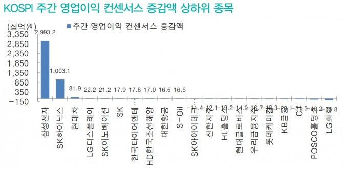 반도체 섹터가 한 주간 7.6% 상향 조정된 것은 전례 없는 기록이라는 평가다. 삼성전자는 7.8%, SK하이닉스는 7.0% 상향됐다. 특히 삼성전자는 올해 반도체 실적 전망치가 8.4% 상향됐다.