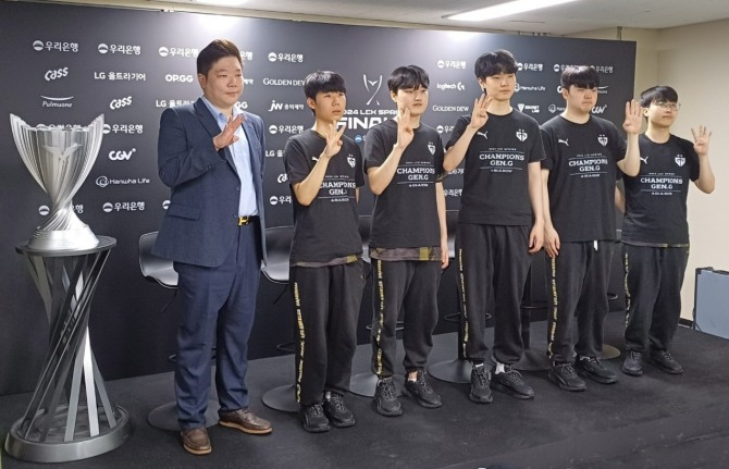 이미지 확대보기젠지 e스포츠의 미드라이너 '쵸비' 정지훈 선수가 T1과의 리그 오브 레전드 챔피언스 코리아(LCK) 서머 스플릿 결승전에서 세트 스코어 3:2 접전 끝에 우승컵을 들어올린 후 기자회견에서 한 말이다.