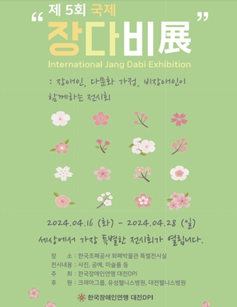 한국조폐공사는 오는 28일까지 한국장애인연맹대전DPI(DISABLED PEOPLE’S INTERNATIONAL)가 주최하는 제5회 국제 '장다비展'을 화폐박물관 특별전시실에서 개최한다고 17일 밝혔다.