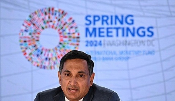 2024년 4월 18일, 미국 워싱턴DC의 국제통화기금(IMF) 본부에서 열린 IMF/세계은행 춘계 회의 기간 중에 IMF 아시아·태평양 부서 책임자 크리슈나 스리니바산이 기자 브리핑을 진행하고 있다. 사진=AFP/연합뉴스