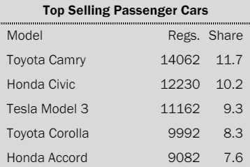 토요타 캠리는 전 분기 대비 9.3%, 혼다 시빅은 18.6% 증가한 반면에 모델3은 7.8% 감소한 결과다. 모델3 판매량은 앞서 지난해 4분기에도 9.8% 감소한 바 있다.