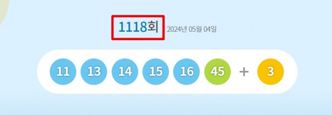 1118회 로또당첨번호(로또복권당첨번호) 조회(추첨) 결과 11, 13, 14, 15, 16, 45와 2등 보너스번호 3