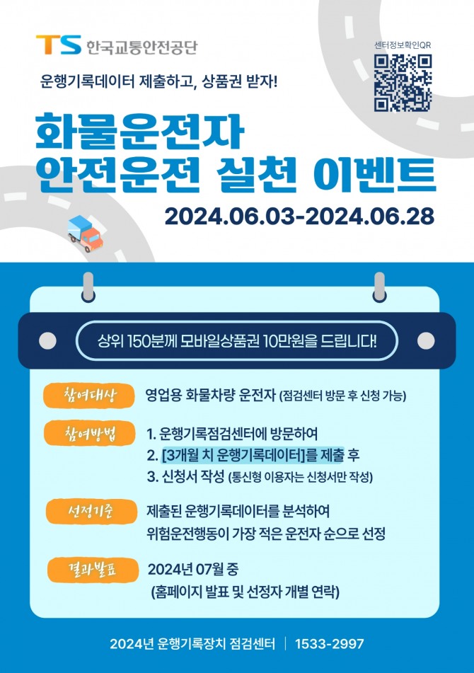 이외에도 TS는 화물차량 운전자의 휴게시간을 보장하고 자발적인 안전운전 실천을 유도하기 위한 ‘안전운전 실천이벤트’를 오는 6월 3일부터 같은 달 28일까지 실시한다.