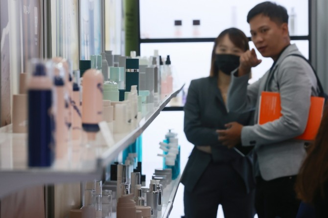 LG생활건강, 아모레퍼시픽, 애경산업 등 국내 화장품 기업 3사가 올해 1분기 호실적을 기록했다. 사진은 2023 제37회 서울국제화장품미용산업박람회·국제건강산업박람회 현장. / 사진=연합뉴스
