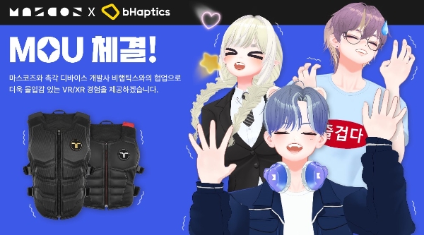 이미지 확대보기양사는 이번 파트너십을 통해 비햅틱스의 촉각 디바이스 관련 서비스를 마스코즈 플랫폼에서 제공한다. 이를 통해 버튜버들이 보다 쉽게 VR 환경, 촉각 디바이스 관련 콘텐츠를 방송 중에 활용할 수있다.