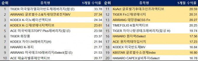 최근 1개월 수익률 20위 내 속속 진입