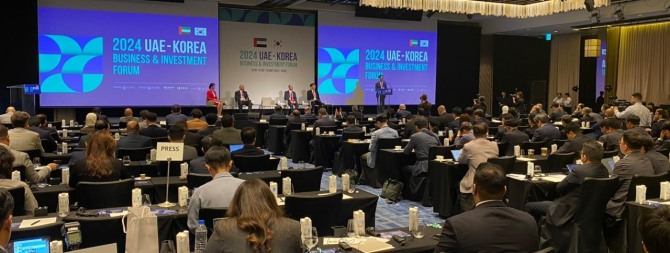 28일 오전 열린 한·UAE 비즈니스 투자 포럼에서는 청정에너지와 정보통신기술(ICT) 등 신산업 분야에서 경제 협력을 강화하고 기업 간 파트너십을 발전시켜 나가기로 의견을 모았다. 먼저 청정에너지 세션에서는 이태화 삼성E&A(옛 삼성엔지니어링) 상무와 이정현 두산에너빌리티 팀장, 사이드 검란 알 레메이티 UAE 에미레이트 스틸 최고경영자(CEO) 등이 연사로 나서 사업 추진 방향에 대해 발표했다.