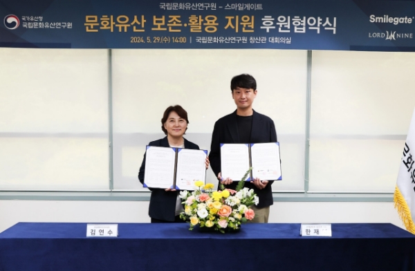 이번 협약 이후 스마일게이트는 연구원에 후원금 3000만원을 지원한다. 또 국가유산 보호, 역사문화 가치 증진, 지속 가능한 국가유산 조사·연구 등 분야에서 협력할 계획이다.