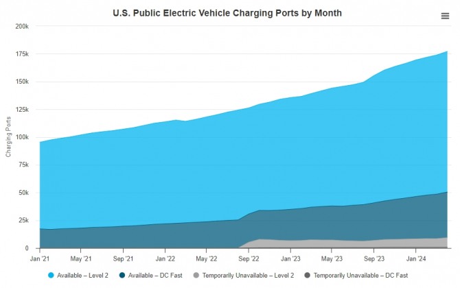 보고서에 따르면 전기차 충전소가 이같이 눈에 띄게 늘어난 것은 바이든 정부가 추진 중인 ‘전기차 충전 인프라 확대 정책(NEVI)’이 가시적인 성과를 내고 있기 때문이다.