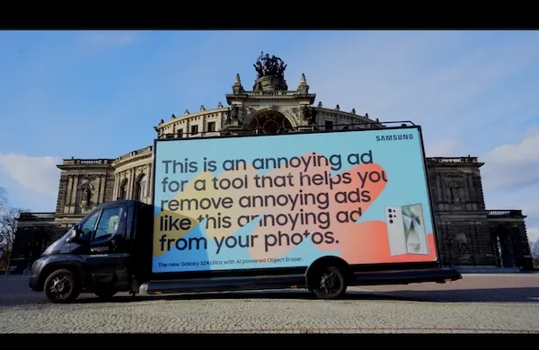 삼성은 독일 유명 관광지에 "당신의 사진 속에 담긴 이 짜증나는 광고, 그냥 지워 버리세요"라는 메시지를 담은 대형 광고 트럭을 배치하고, '짜증나는 광고(Annoying Ads)' 캠페인을 진행했다.