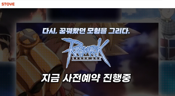 스토브 측은 공식 사이트를 통해 '라그나로크 온라인' 사전 예약을 개시했다. 참가 인원 수에 따라 예약자 전원에게 인게임 재화를 제공하며, 선착순 10만명에게는 3000 스토브 캐시를 증정하는 등 이벤트를 병행한다.