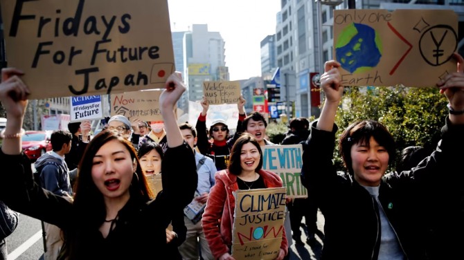기후변화에 대한 대응을 촉구하는 집회에 참석한 일본의 Z세대 직장인들. 사진=로이터