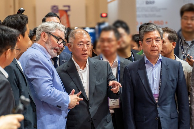 한편 이날 정의선 현대차그룹 회장은 제주도 일정을 소화한 후 부산모빌리티쇼 현장을 방문했다. 오후 3시30분경 현장을 방문한 정 회장은 전체 부스를 30분 가량 관람하고 돌아갔다.