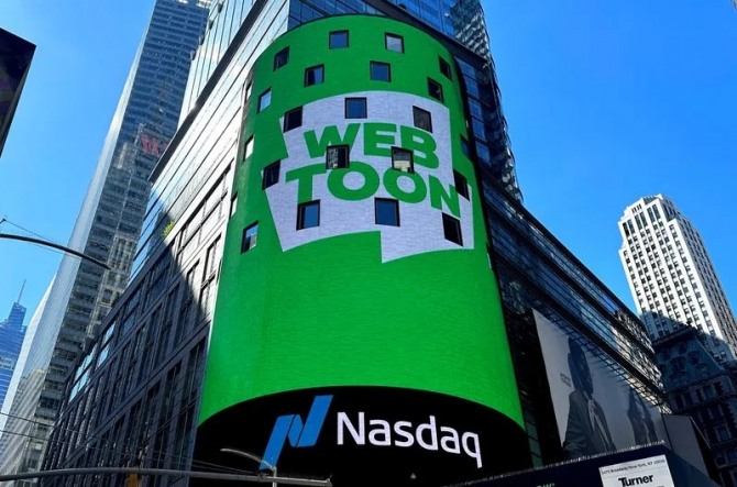 이미지 확대보기네이버웹툰의 모기업 웹툰엔터테인먼트가 27일(현지시각) 뉴욕 증시에 성공적으로 데뷔하며 장중 10% 넘게 급등했다고 로이터통신이 보도했다.
