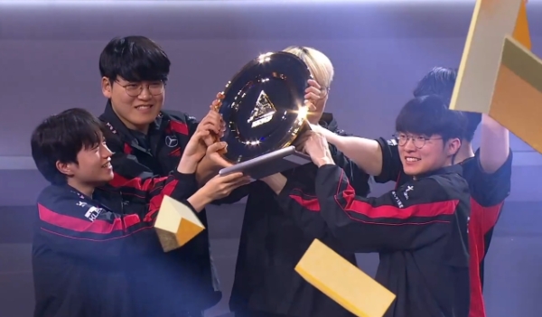 이미지 확대보기앞서 T1은 e스포츠 월드컵 8강에선 중국의 빌리빌리 게이밍(BLG)을, 4강에선 미국의 팀 리퀴드 혼다(TL)를 2:1로 꺾고 결승에 진출했다. 두 경기 모두 탈락 위기에 몰린 끝에 간신히 이겨냈다는 평을 받을 만큼 접전을 벌였으나 결승전에선 우승팀다운 면모를 보여줬다.