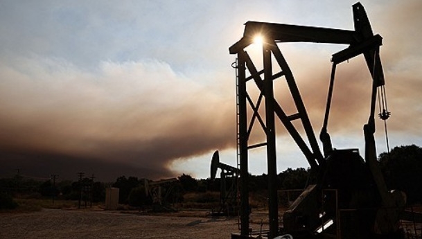 2024년 7월 6일 캘리포니아 로스 올리보스 근처 지역에 대피 경보가 내려진 가운데 로스 파드리스 국유림에서 오일 펌프잭이 작동하고 있다. 사진=AFP/연합뉴스