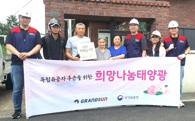 그랜드썬봉사단과 국가보훈부가 함께 추진하는 독립유공자후손 희망나눔 태양광 설치 지원 사업은 에너지 지원을 넘어 독립유공자 후손들의 생활 수준을 높이고, 그들의 숭고한 헌신을 발판삼아 선한 영향력으로 희망의 빛을 전달할 계획으로 이목을 모으고 있다.