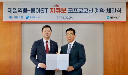 이미지 확대보기온코닉테라퓨틱스는 자큐보정의 국내 영업과 마케팅을 위한 파트너로 제일약품과 동아에스티 양사를 선택하고 공동 판매 계약을 체결했다고 5일 밝혔다.