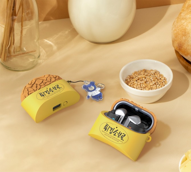 이미지 확대보기성심당 튀김소보로 케이스는 갓 튀긴 바삭한 튀김소보로의 질감과 빵을 감싸는 노란색 포장지까지 생생하게 표현됐다. 케이스 내부는 빵 속의 짙은 갈색 팥소까지 디테일하게 구현됐다. 성심당의 마스코트 '곰식이' 키링도 함께 제공된다.