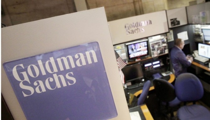 2014년 4월 17일 뉴욕증권거래소(NYSE)의 골드만삭스 부스에서 한 트레이더가 일하고 있다. 사진=AP/뉴시스