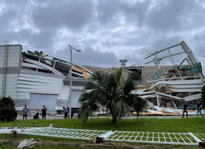 태풍 '야기'로 파손된 LG전자 공장. 사진=로이터