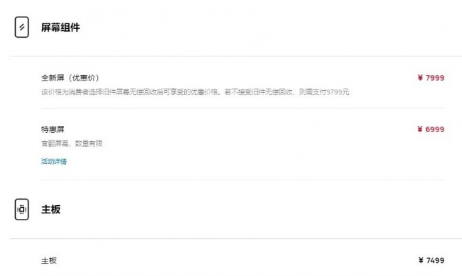 이 밖에 배터리 교체 비용은 499위안(약 9만3000원)이며, 카메라 가격은 초광각 렌즈 269위안(약 5만원)부터 메인 후면 카메라 759위안(약 14만원)까지 다양하다. 또 카메라 렌즈가 포함된 뒷면 커버의 가격은 1379위안(약 25만8000원)이고, 다른 뒷면 커버의 가격은 각 399위안(약 7만5000원)이다.