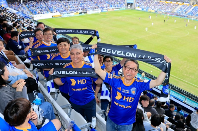 디벨론은 울산 HD FC의 스폰서로 참여하고 있다. 올해 2년 연속 축구팬들과 현장에서 만났다. 조영철 사장과 오승현 사장을 비롯한 HD현대인프라코어 임직원과 한국 고객 100여명이 참석해 울산 HD FC를 응원했다. HD현대중공업 임직원과 가족 500여명, HD현대1%나눔재단이 후원하는 지역 결연 아동과 서부초 합창단 100여명 등 총 700여명도 경기를 함께 관람했다.