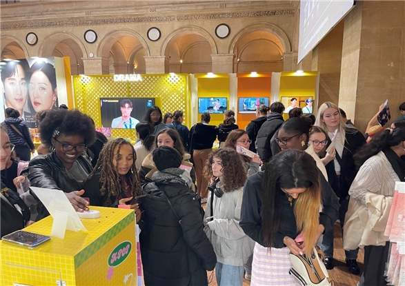 이미지 확대보기프랑스 파리에서 K콘텐츠와 K팝 상품을 체험하는 한류팬이 2만6000명 수준으로 대규모 운집했다. 다양한 K팝, K웹툰 굿즈가 인기를 끌면서 현장에서 빠르게 완판되었다. 유럽 현지 K콘텐츠의 뜨거운 인기를 확인할 수 있었다.