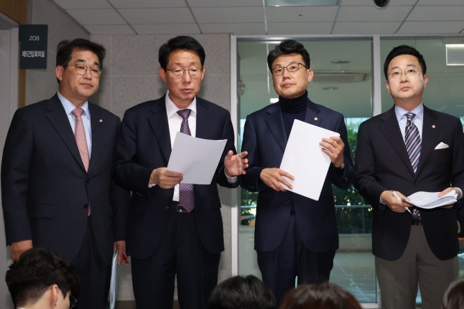 국민의힘 김상훈·더불어민주당 진성준 정책위의장은 이날 국회에서 양당 원내수석부대표가 배석한 회동을 마친 후 기자들과 만나 예금자보호법 개정안 등 총 6건의 법안 처리에 합의했다고 밝혔다.